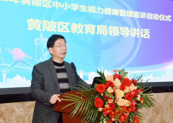 黃陂區教育局調研員何利民強調,黃陂區中小學生視力健康宣講團旨在深入貫徹落實習近平總書記關于兒童青少年近視問題系列重要指示批示精神,致力于近視防控政策宣講、近視防控知識普及、適宜技術推廣和智慧化視力健康管理學校建設規范,切實把兒童青少年近視防控工作抓實、抓好、抓出成效。他要求:一是真重視。要從“健康中國”“健康黃陂”建設的戰略高度和辦好人民滿意教育總體目標來認識,切實把提高兒童青少年視力健康作為工作的重中之重,形成齊抓共管的良好工作局面。二是真行動。以更實舉措做好學校中小學近視防控工作,全面落實“四個全覆蓋”,按標準完成全區智慧化學生視力健康管理學校建設,70%學校達標,力爭100%全達標。三是真協作。區教育局、學校校長、教師、家長、武漢視防齊抓共管、加強協作,發揮區教育局、各街道教育總支組織管理作用,積極落實“千名校長講健康、萬名教師講責任、百萬家長護光明”的近視防控宣講,明確各方職責,促進學校工作落地。四是真落實。以更嚴督查保障全區中小學近視防控實效,落實主體責任,健全工作機制,強化指導督辦;加強與部門協作,邀請專家走進校園,參與兒童青少年近視防控工作;要將視力健康納入素質教育專項督導,常態化開展明察暗訪,確保各項防控措施落實到位。五是真促進。宣講團成員要備好課、講好課、履好職,當好學生視力健康管理理念的播種者、視力健康管理知識的傳播者、健康生活方式的促成者。創新宣講形式,確保宣講效果,合力加強近視防控宣講工作。