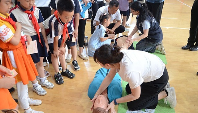 在暑期安全嘉年華活動現(xiàn)場,師生們爭相體驗游戲項目。現(xiàn)場圍繞學(xué)生防溺水、交通安全、外出游玩安全、居家安全和燃?xì)獍踩戎黝},設(shè)置了安全隱患查找通關(guān)區(qū)、溺水逃生打卡區(qū)、安全轉(zhuǎn)盤等十余處體驗活動區(qū)域。在這些區(qū)域,學(xué)校教師扮演“安全俠”,用體驗教學(xué)和寓教于樂的形式組織學(xué)生開展安全趣味競賽,使學(xué)生在游戲與體驗的過程中掌握安全知識、學(xué)會安全技能、增強安全意識。