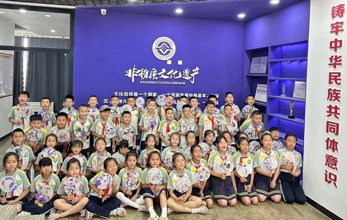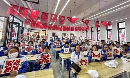 在研學基地,學生們先后學習了剪紙、團扇、皮雕、糖人糖畫、扎染、活字印刷等傳統工藝品的制作方法,重拾傳統技藝,領略手工之美,感受中國傳統手工藝的魅力。