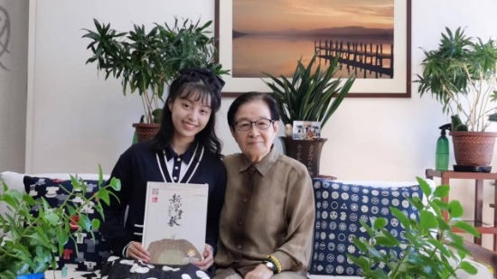 圖為中國殘疾人事業新聞宣傳促進會與中華兒童慈善救助基金會授予“圓夢愛心大使”侯怡帆與著名藝術家谷建芬