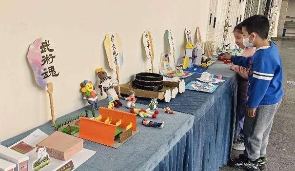 活動當天,人民小學校園中舉行了以“武術·書法”為主題的作品展示,琳瑯滿目的書畫作品訴說著學子們修文習武的故事。