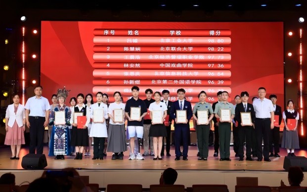 在頒獎環節,相關單位領導和專家為勝出的10名選手頒發了北京市“學生資助宣傳大使”證書,為進入決賽的25名選手頒發了“北京市學生資助宣講團”證書。