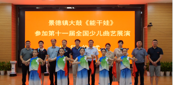 在赴張家港參加全國展演之前,江西景德鎮(zhèn)學(xué)院黨委副書記王麗心、景德鎮(zhèn)市委宣傳部副部長徐耿忠以及文聯(lián)、教體局等相關(guān)單位及教師學(xué)生代表,在景德鎮(zhèn)學(xué)院一號報(bào)告廳舉行出征儀式。嘉賓們在致辭中表示,希望大家能綻放藝術(shù)風(fēng)采,激發(fā)少兒力量,展示出景德鎮(zhèn)市小曲藝演員昂揚(yáng)的精神風(fēng)貌和扎實(shí)的專業(yè)技藝。