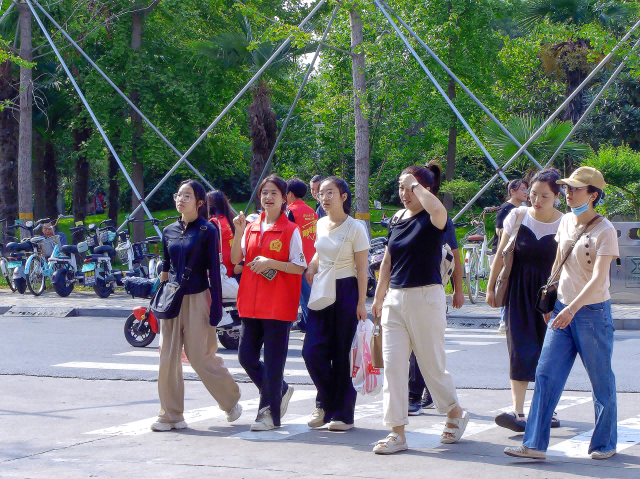 9月7日至8日,是河南師范大學2024級本科新生開學的日子。一群身穿印有“青春導航員”字樣紅色小馬甲的高年級學生,穿梭于校園的各個角落,有的幫助新生搬運行李,有的帶領新生辦理入住,有的給新生家長答疑解惑,有的陪同新生熟悉校園或介紹學習經驗……