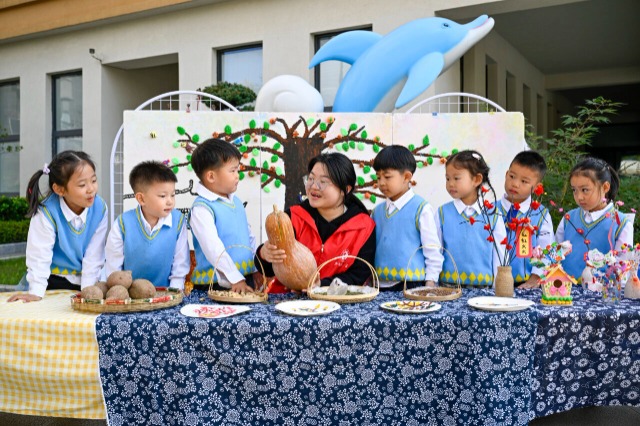 10月29日,在安徽省合肥市廬陽區(qū)林店街道榮城幼教集團(tuán)景灣分園,小朋友們正在識(shí)別糧食谷物,學(xué)習(xí)勤儉知識(shí)。通訊員 趙明 攝
