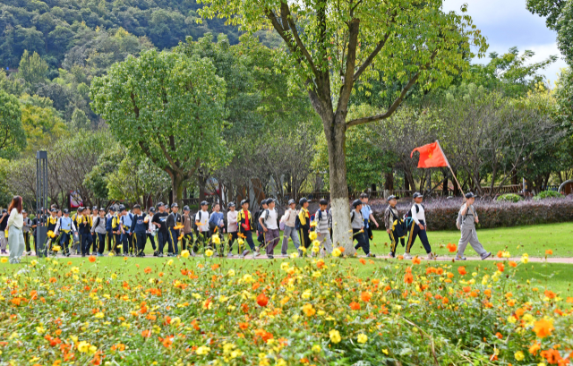 10月31日,浙江省臺(tái)州市仙居縣第七小學(xué)黨支部會(huì)同校工會(huì)開展“快樂(lè)毅行 健康成長(zhǎng)”秋游活動(dòng),近300名五年級(jí)學(xué)生沿著仙居縣永安溪綠道上毅行,零距離領(lǐng)略大自然的美麗風(fēng)光。中國(guó)教育報(bào)-中國(guó)教育新聞網(wǎng)通訊員 王華斌 攝