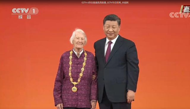 伊莎白女士于2019年獲得習近平主席授予的“中華人民共和國友誼勛章”(圖片來源:央視網)