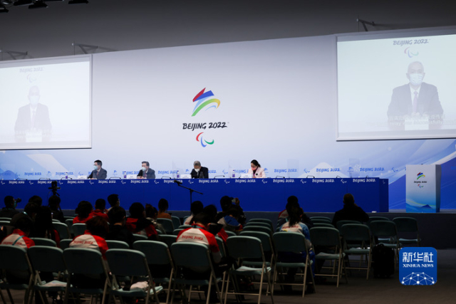這是3月13日拍攝的北京冬奧組委在北京冬殘奧會主新聞中心召開的賽事總結新聞發布會現場。新華社記者許雅楠攝