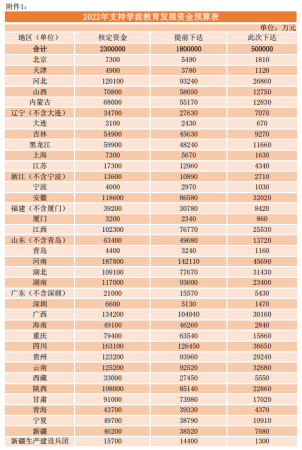 2022年支持學(xué)前教育發(fā)展資金預(yù)算表。來(lái)源:財(cái)政部網(wǎng)站