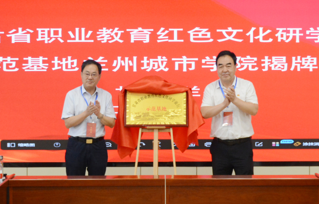甘肅省委教育工委專職副書記張曉東(右)和蘭州城市學(xué)院黨委書記許爾忠共同為蘭州城市學(xué)院、培黎職業(yè)學(xué)院、甘肅省山丹培黎學(xué)校、山丹艾黎紀念館聯(lián)合基地揭牌。