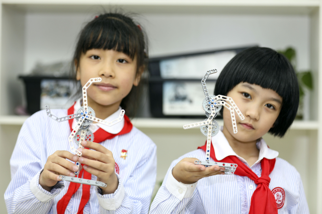 6月16日,福建省福州市鼓樓區安泰街道五一廣場社區的“四點半”科普興趣課堂,科普志愿者正在指導斗南小學的學生做小風扇。謝貴明 攝