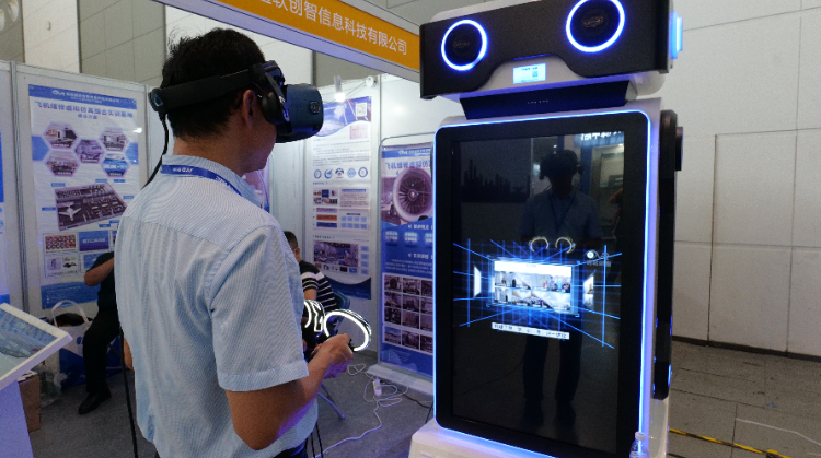 除了更加直觀生動地獲取知識,VR在一些在操作中成本較高或有較大危險性的職業教育領域中也有廣泛的應用前景。在航空虛擬仿真實訓展位,記者看到有的體驗者戴著虛擬現實眼鏡觀看大屏上系統的課程。該系統共有16個實訓課程,運用VR虛擬現實技術完全虛擬空乘崗位的工作任務和職業環境,包括航前檢查、機上急救、緊急撤離等。讓學員以更安全的學習方式,通過模擬的方式快速了解并掌握空乘崗位職業技能,提升教學效率,降低培訓成本,提高學生的職業意識和操作技能。VR世界當中的“設備”與“部件”是虛擬的,教學內容可以不斷更新,使實踐訓練及時跟上技術的發展。