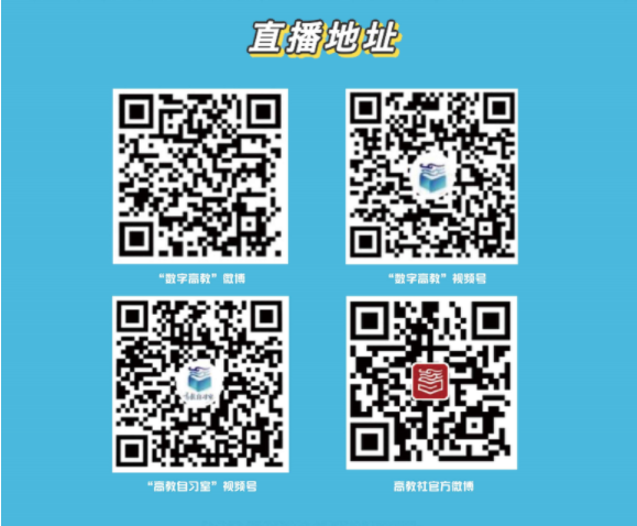 本次活動將通過數字高教視頻號、數字高教微博、高教自習室視頻號、高等教育出版社官方微博進行全網直播。