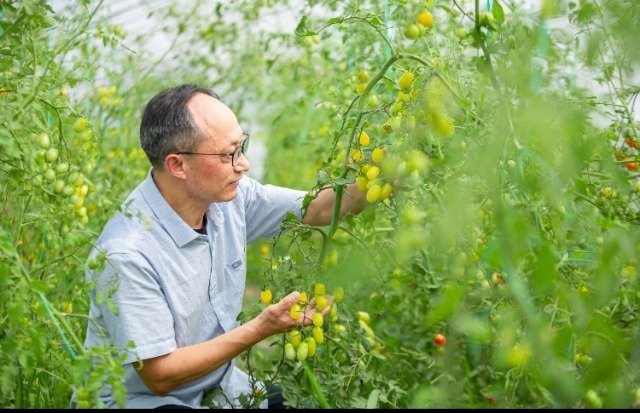 瞿鴻遠在實驗大棚潛心鉆研西紅柿種植技術