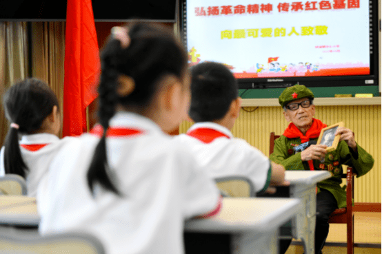 9月29日,浙江省湖州市長興縣林城鎮中心小學開展“抗戰老兵進校園 紅色基因薪火傳”愛國主義教育活動,邀請抗戰老兵劉玉璽走進校園,為學生講述戰爭歷史及親身經歷的戰斗故事,回憶崢嶸歲月,分享紅色歷史,引導學生厚植愛國情懷,傳承革命精神,賡續紅色血脈。