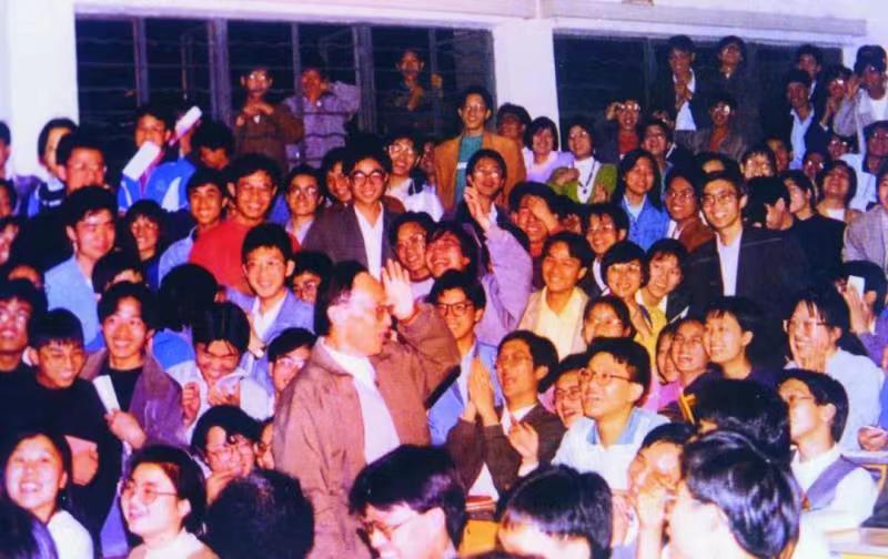 1995年,楊叔子與學生在文化素質教育講座后交流