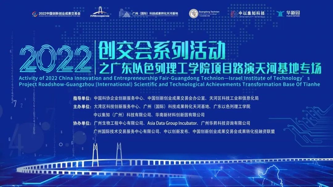 “2022 創(chuàng)交會(huì)系列活動(dòng)之廣以項(xiàng)目路演天河基地專(zhuān)場(chǎng)活動(dòng)”由大灣區(qū)科技創(chuàng)新服務(wù)中心、廣州(國(guó)際)科技成果轉(zhuǎn)化天河基地、廣東以色列理工學(xué)院、中以集知(廣州)科技有限公司和華南新材料創(chuàng)新園有限公司主辦。