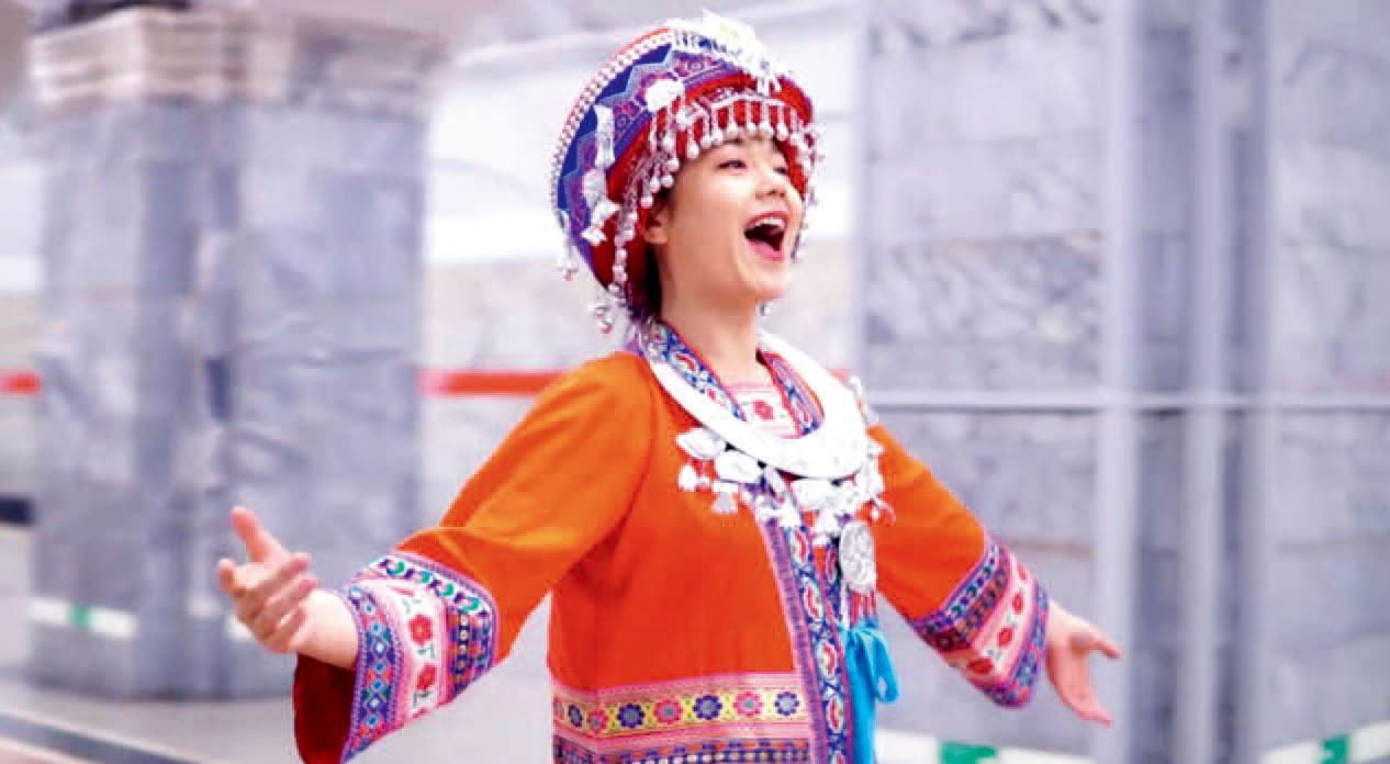 10國中國留學人員身著民族服裝共唱《美麗中國》, 圖為陳紫冉