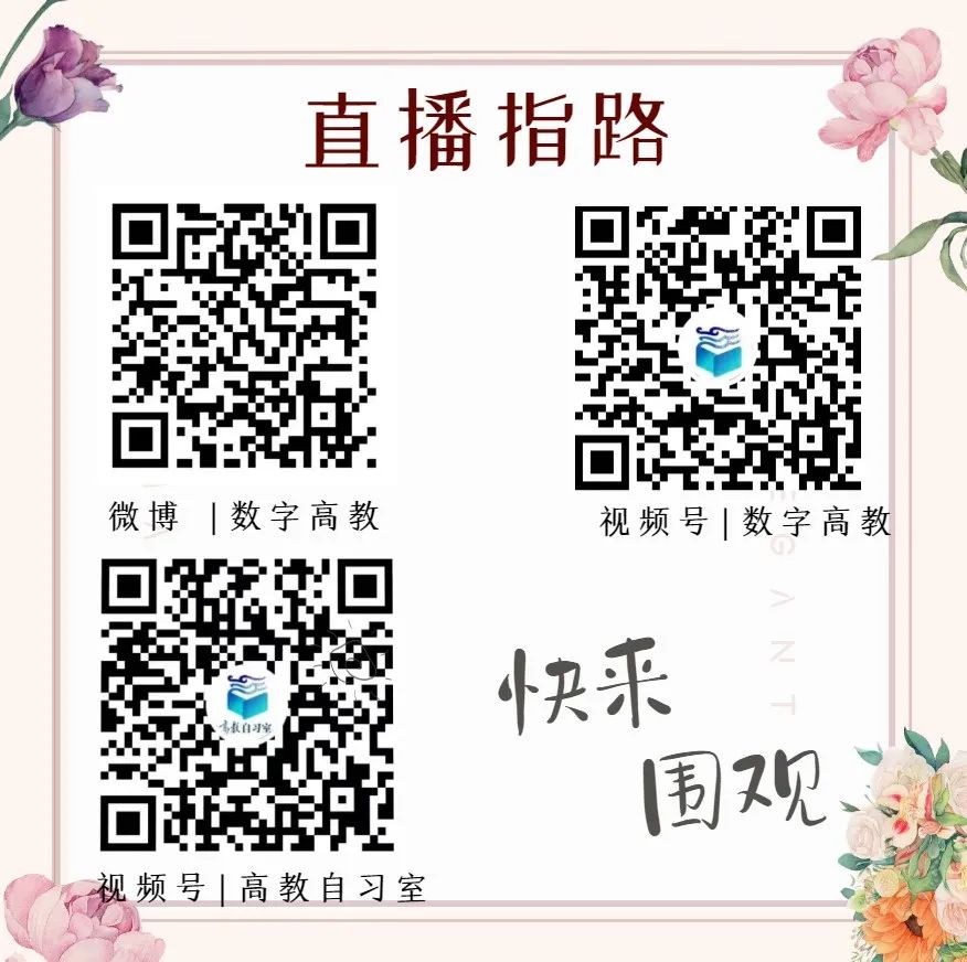 本次活動將通過高教自習室、數字高教微博及視頻號進行直播,掃描下方二維碼即可觀看。