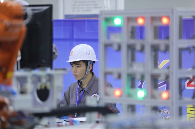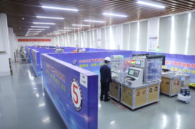 廣西職業院校技能大賽“機器人系統集成”比賽現場。莫青青 攝