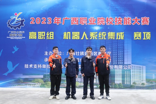 廣西現代職業技術學院機電工程學院的黃榮軍、班庭志團隊,獲得一等獎第一名,該團隊指導教師為岑土恩。由此,廣西現代職業技術學院在“機器人系統集成”賽項上實現了四連冠,并將再次代表廣西參加國賽。