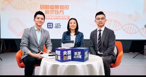 吳舟橋(右一)參加央視新聞頻道腫瘤防治周直播活動