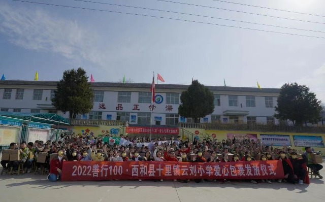 2022“善行100”活動愛心包裹發放儀式在甘肅省西和縣舉行 中國鄉村發展基金會供圖