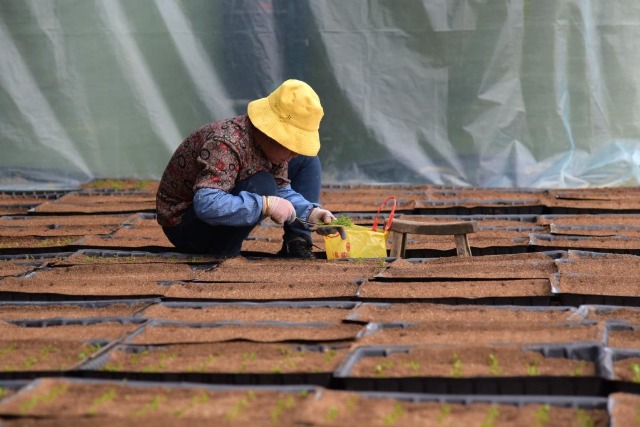 2月28日,村民在定西現代絲路寒旱農業綜合示范園區移栽馬鈴薯脫毒種苗。新華社記者王朋 攝
