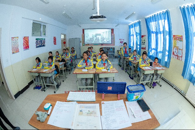 新疆維吾爾自治區阿勒泰地區吉木乃縣借助音視頻實時互動技術促進優質教育資源共享。衡清蓉 供圖