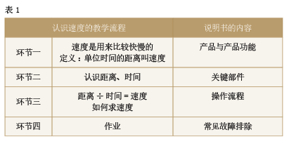 我們以“認(rèn)識速度”為例,與說明書做個對應(yīng)(見表1)。