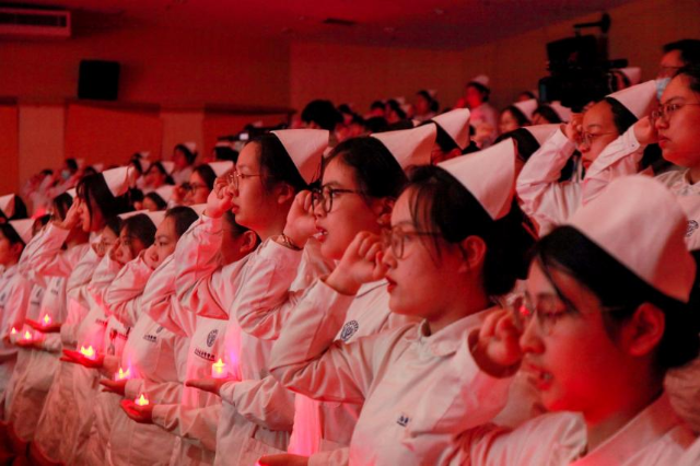 該校黨委書記郭永瑾在致辭時表示,傳光授帽儀式是每位護生踏上護士道路的成人禮,開展傳光授帽儀式是學(xué)校立德樹人的重要載體,是一種精神的傳承。希望同學(xué)們接好接力棒,繼承發(fā)揚南丁格爾精神,保持對知識的渴望,不斷精進技能,在做事中增長才干、錘煉品格,秉承“厚德至善、健行康民”的校訓(xùn)精神,把小我融入祖國的大我、人民的大我之中,為我國護理事業(yè)的發(fā)展、為推進健康中國、健康上海的建設(shè)貢獻青春力量。