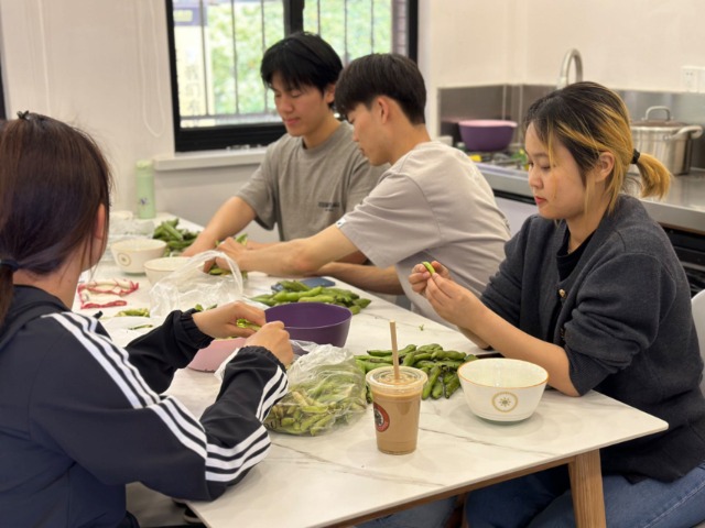 上海杉達學院學生在共享廚房里用簡單的材料為自己準備生日宴。任朝霞 攝