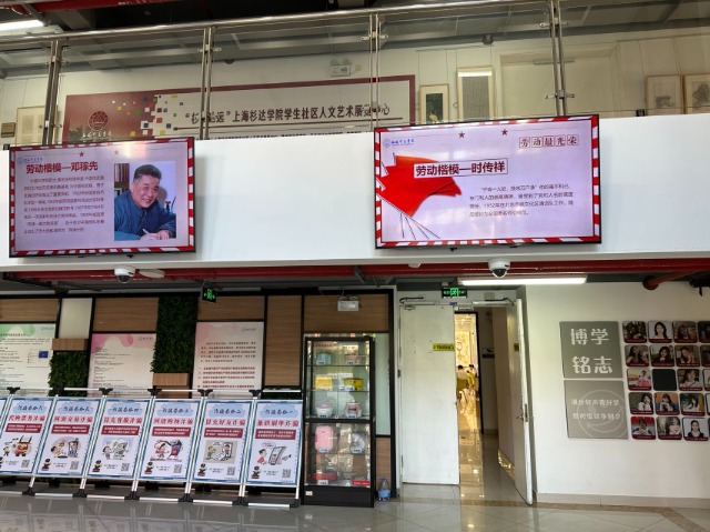 走進上海杉達學院“一站式”學生社區,公共空間顯示屏上滾動播放著勞動楷模的先進事跡,文杉閣里勞模特邀黨建組織員與同學們促膝交談,討論“新時代如何弘揚勞動精神,拒絕‘躺平’”,一間間寢室門前掛著同學們自制的個性門牌,共享廚房里學生在用簡單的材料為自己準備生日宴。