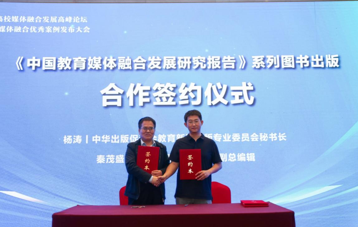 《中國教育媒體融合發展研究報告》系列圖書出版合作簽約儀式。沈秋陽攝