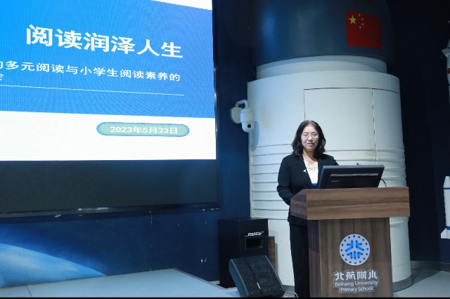 北航附小校長李蘭瑛作專題報告“基于現實問題的多元閱讀課程的新探索”,從探尋多元閱讀的實施路徑、提煉多元閱讀的策略方法、打開多元閱讀的特色窗口和構建多元閱讀的評價體系等層面,對學校探索進行了深入解讀。