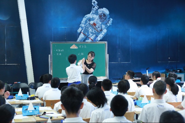 北航附小教師范穎杰與學生帶來題為“金字塔有多高”的多元閱讀現場課 學校供圖