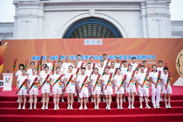 亞洲大學生體育聯合會主席、教育部學生體育協會聯合秘書處秘書長、中國大學生體育協會副主席劉立新點燃成都大運會火種盆后,宜賓市委書記方存好點燃大運會火炬“蓉火”,并交給宜賓站火炬傳遞第一棒火炬手、體操奧運冠軍馮喆。在成都大運會火炬傳遞主題曲《我們都是追夢人》的旋律中,馮喆高擎火炬,開始了宜賓站火炬傳遞。參加宜賓站火炬傳遞的31名火炬手中,年齡最小的火炬手是來自四川護理職業學院的19歲學生詹小玉,年齡最大的火炬手是57歲的宜賓學院黨委書記蔡樂才。