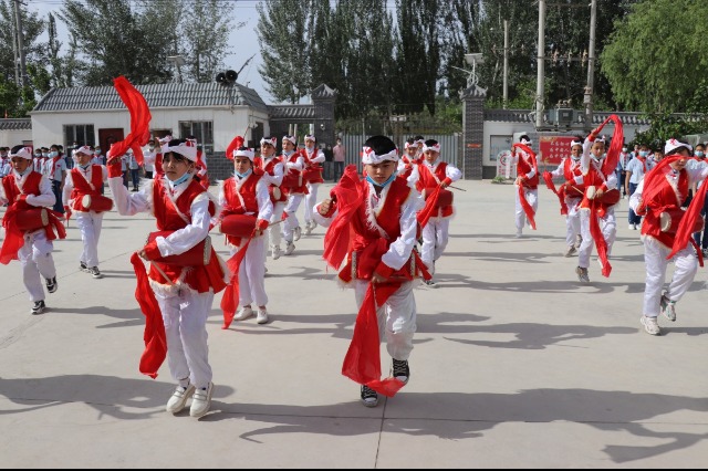 新疆烏什縣依麻木鎮國家通用語言小學將國家通用語言文字教育融入文體活動中。梁俊杰 供圖