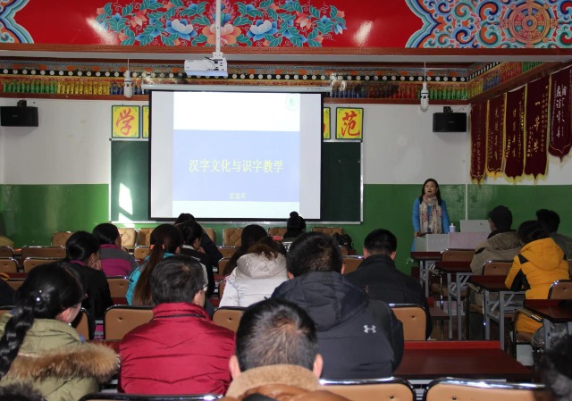2016年,青海民族大學(xué)教師赴青海省果洛藏族自治州達(dá)日縣為推普工作送教下鄉(xiāng)。雷富英 供圖