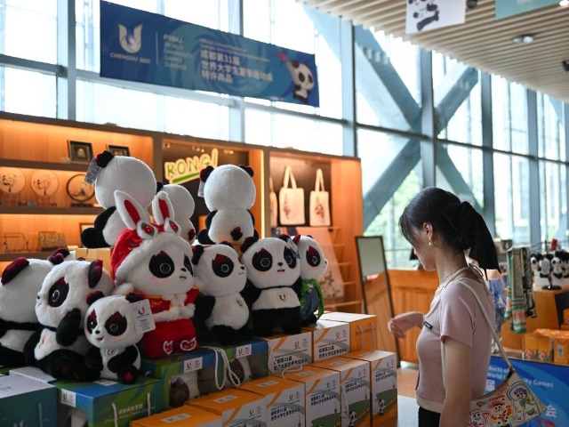 7月18日,市民在成都大運會成都博物館官方特許商品零售店內選購“蓉寶”公仔。