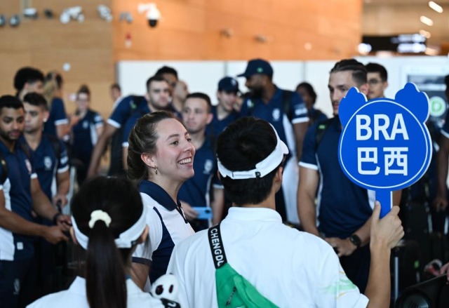 7月21日,巴西代表團的運動員抵達成都天府國際機場。新華社記者 王曦 攝