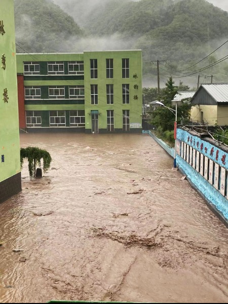 洪水退去,淶水縣其中口小學(xué)老師宿舍。