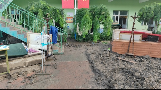 洪水退去后,其中口小學(xué)開展災(zāi)后自救。為了趕進度,很多時候老師們加班到深夜,有時忙得連飯都顧不上吃。在清理學(xué)生宿舍的過程中,由于宿舍門檻高于地面,導(dǎo)致清理產(chǎn)生的污水掃不出去,老師們只能用鐵鍬和簸箕一下一下地鏟出去。烈日下,汗水浸濕了衣襟,泥漿沾滿了褲腿,教職工迎難而上,用汗水和行動譜寫了人民教師的使命和擔(dān)當(dāng)。