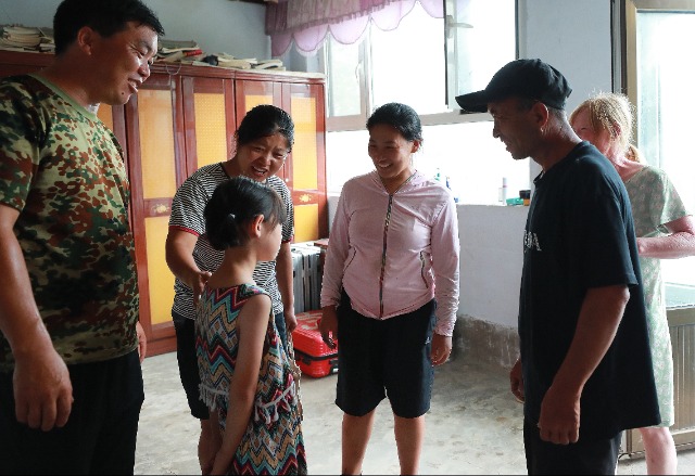 8月23日,淶水縣其中口小學(xué)校長張曉東(左一)和老師一起走訪學(xué)生家庭。