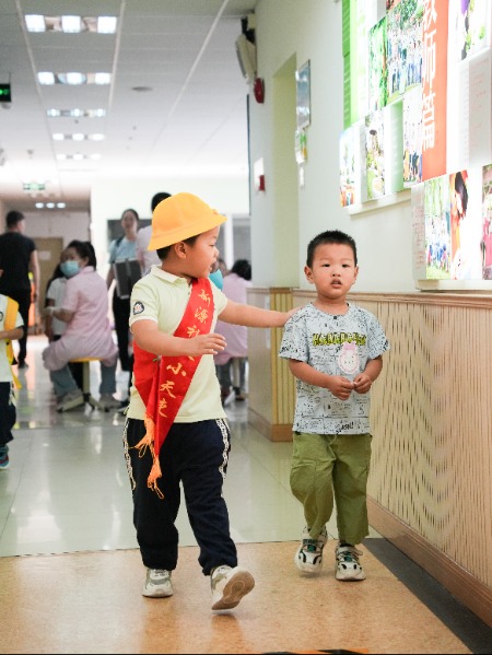 在嘉定區新源幼兒園,大班的哥哥姐姐組成“源寶護衛隊”,用暖心的話語和柔軟的小手護送小班的弟弟妹妹到班級,大手拉小手,成長愛相伴。