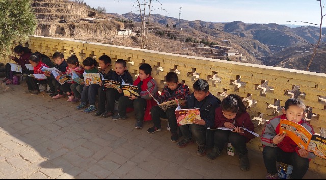 山西呂梁的孩子們蹲在墻角下津津有味地讀圖畫書。郭建鋒 攝