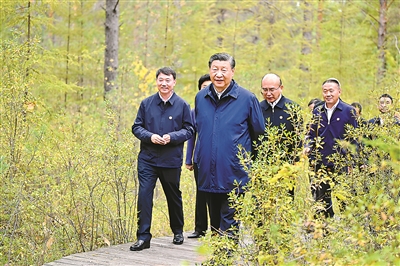 9月6日至8日,中共中央總書記、國家主席、中央軍委主席習近平在黑龍江考察。這是6日下午,習近平在大興安嶺地區漠河市漠河林場自然林區考察。新華社記者 殷博古 攝