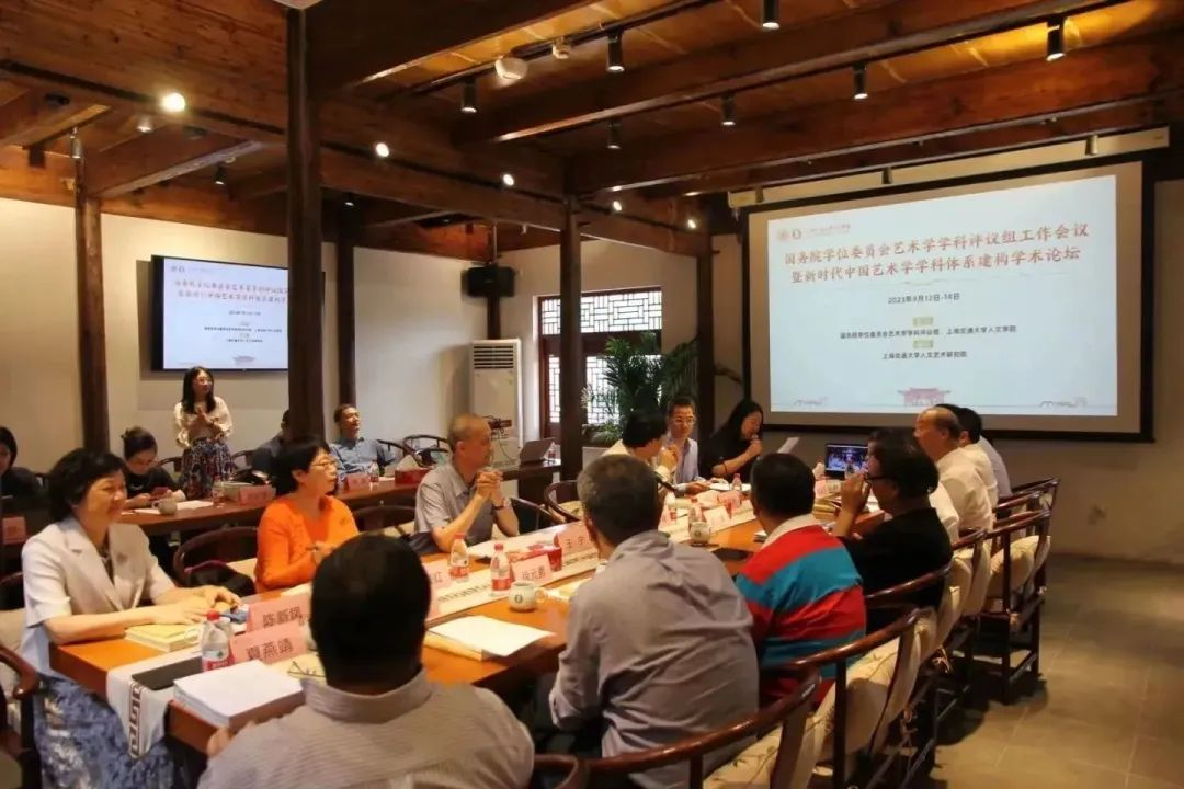 在工作會議階段,學科評議組按照教育部和國務院學位辦相關指示精神與工作部署要求,就藝術學一級學科定位、二級學科設置、學位授權點申請基本條件要求等關涉到藝術學未來發展的重要事項,進行了深入討論,制定了新學科目錄調整后藝術學學科設置及未來發展的建設性方案。學術論壇階段,上海交通大學人文學院黨委書記齊紅致歡迎辭并介紹了學院發展建設所取得的成就。藝術學學科評議組召集人、中國藝術研究院教授孫偉科主持論壇會議。與會的學科評議組成員及相關院校專家學者,對新時代中國藝術學學科建設、高校美育工作、藝術與科技融合等相關議題進行了學術探討。上海交通大學人文藝術研究院夏燕靖教授、宋偉教授、謝納教授等參加了學術論壇會議。