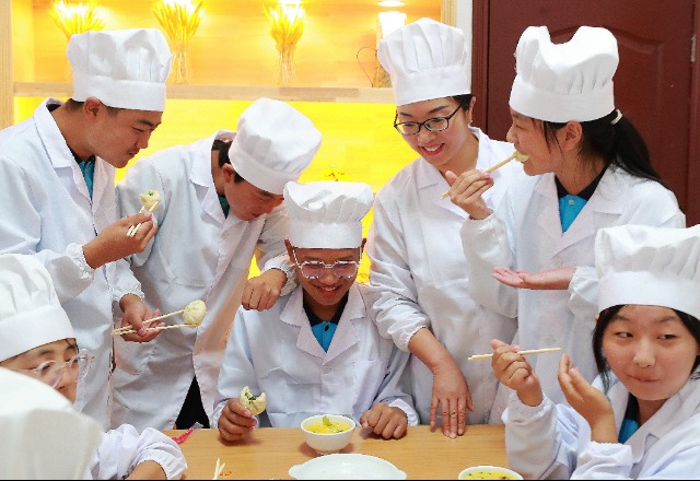 同時,依托食育坊,開發了《美食與廚藝》校本教材,引導學生學習基本烹飪技能,提高實踐動手能力,培育團隊協作精神和溝通合作能力,學生在傳承農耕文化、培養勞動素養的成長中激發出向上向善的內生動力,在動手實踐的快樂中激發了動腦學習的熱情?!绑w會到了勞動的不易和父母的艱辛,回家給父母做一頓飯,他們開心,我更開心?!痹撔>拍昙墸?)班學生顧鵬開心地說,自己不僅鍛煉了廚藝,學習也有了動力。