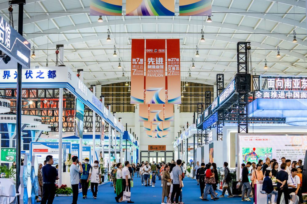 人們?cè)诘谄邔弥袊?guó)—南亞博覽會(huì)上參觀(2023年8月20日攝)。新華社記者 胡超 攝